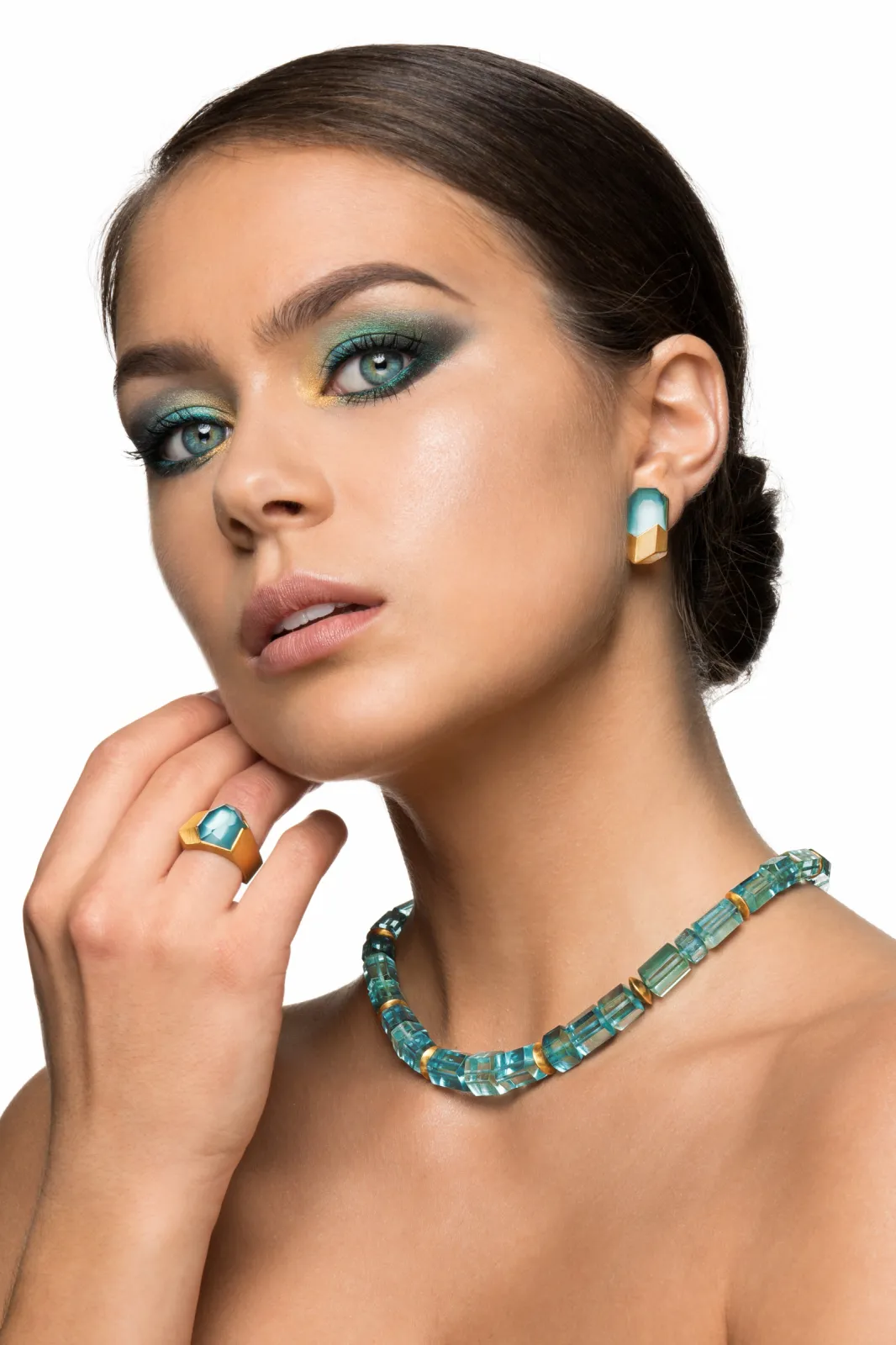 Aquamarine crystals with 18kt Gold