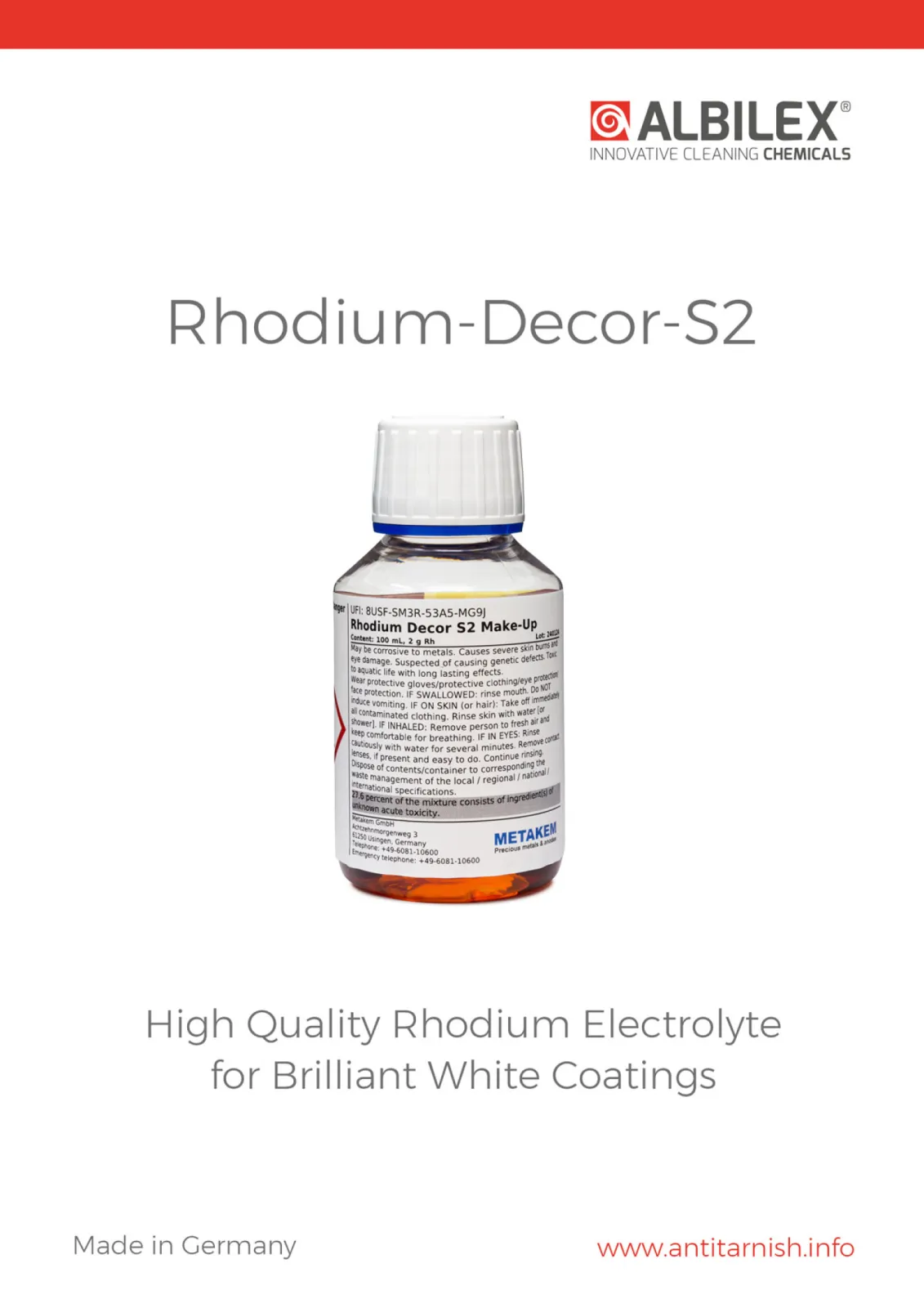 Rhodium-Decor-S2 - Electroplating bath for very white coatings.